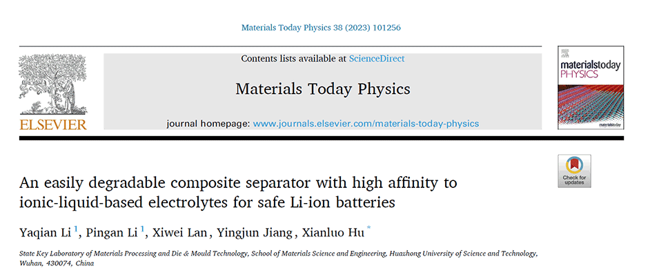 ionic-liquid-based electrolytes for safe Li-ion batteries”为题目,发表于期刊《Materials Today Physics》上。