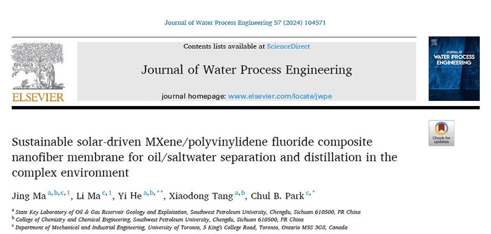 不断升级的环境危机和水资源短缺需要创新的水净化和海洋溢油回收战略。基于此,西南石油大学何毅教授等人开发了一种可持续的太阳能驱动MXene/PVDF复合纳米纤维膜,用于复杂环境下的油/盐水分离和蒸馏。相关研究成果以“Sustainable solar-driven MXene/polyvinylidene fluoride composite nanofiber membrane for oil/saltwater separation and distillation in the complex environment”为题目,发表在期刊《Journal of Water Process Engineering》上。