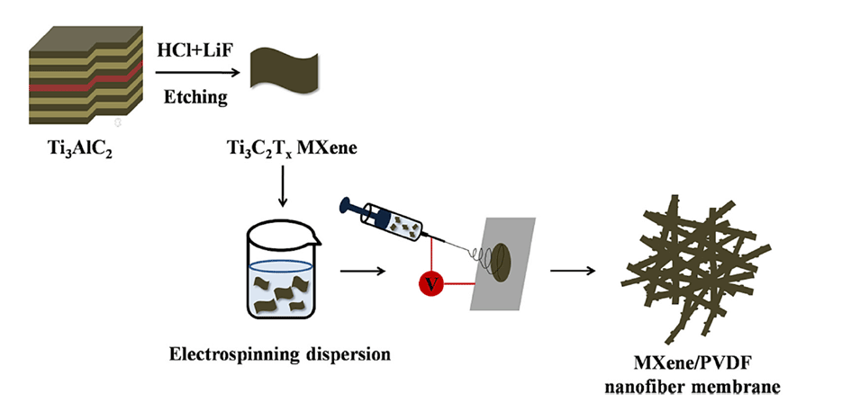 通过静电纺丝技术实现了MXene纳米片与聚偏氟乙烯(PVDF)在纳米纤维膜合成过程中的集成。