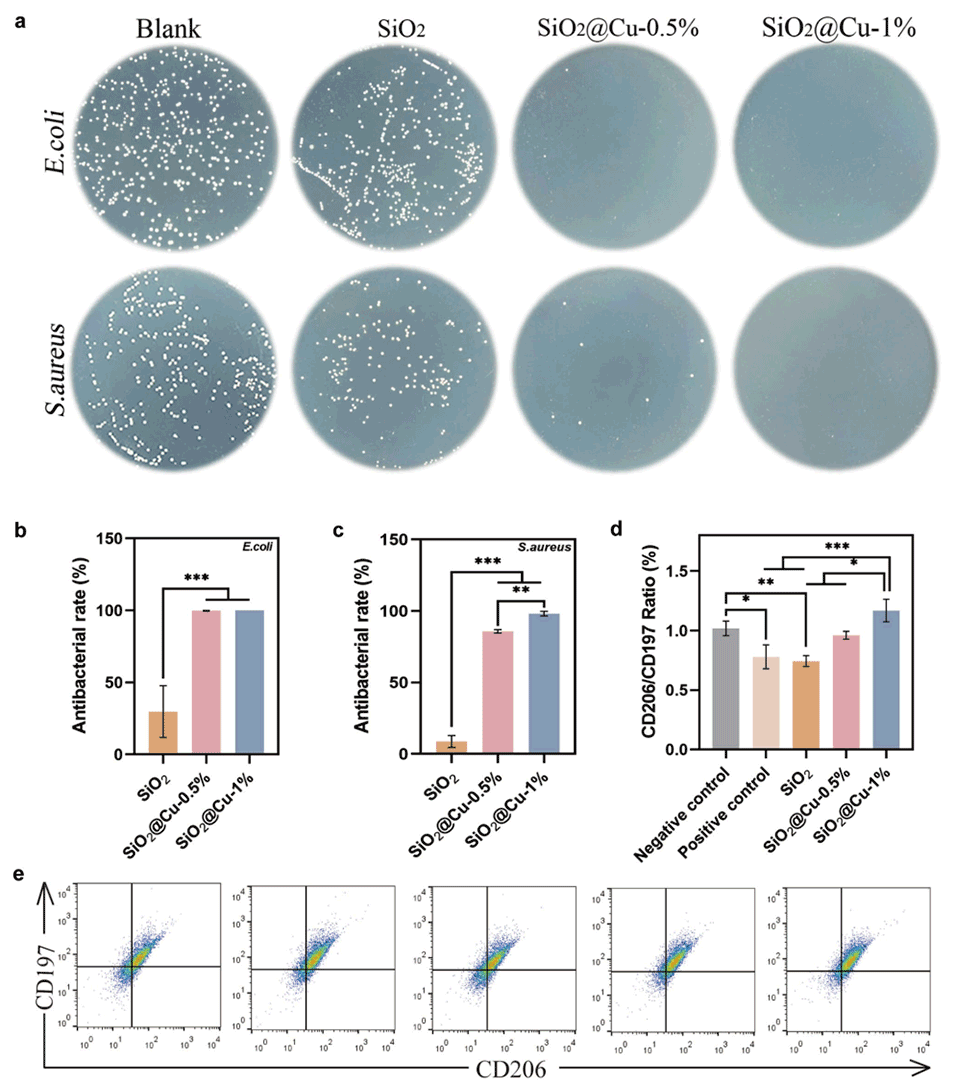 图5 SiO2 NFs和SiO2@Cu NFs的抗菌和抗炎性能。