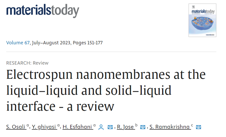 近期,新加坡国立大学西拉姆院士等人发表综述,主要讨论了电纺纳米膜在各种应用中的应用、表面改性技术以及该领域的创新潜力。相关内容以“Electrospun nanomembranes at the liquid–liquid and solid–liquid interface - a review”为题目,发表于期刊《Materials Today》 ( IF 24.2 )上。