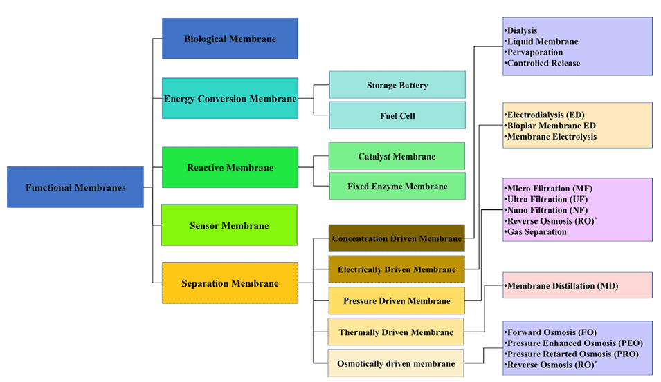 图1 根据膜的功能对膜进行分类。