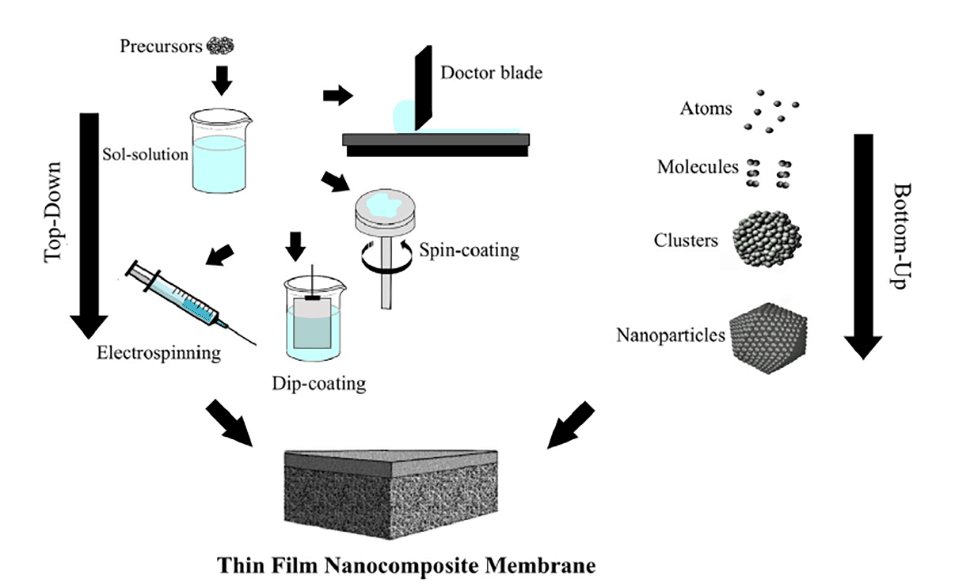 图2 通过自上而下和自下而上的方法制备TFNC膜的例子。