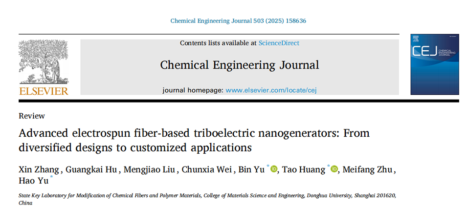 近期,东华大学朱美芳院士团队俞昊教授、黄涛副教授和俞彬在期刊《Chemical Engineering Journal ( IF 13.3 )》上发表题目为“Advanced electrospun fiber-based triboelectric nanogenerators: From diversified designs to customized applications”综述,从多样化设计到定制应用,综述了基于先进静电纺丝纤维的摩擦纳米发电机。