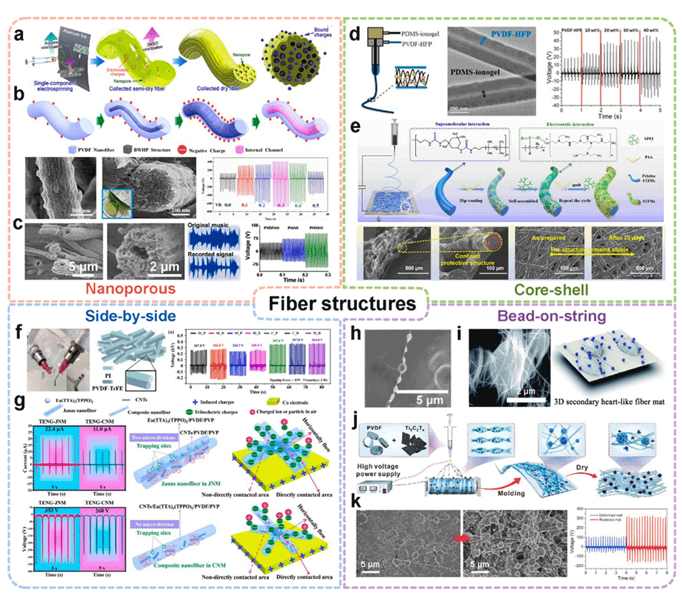 1、在从微观/纳米尺度到宏观尺度,对通过多样化的静电纺丝工艺和设计优化 EF-TENG 进行全面讨论。