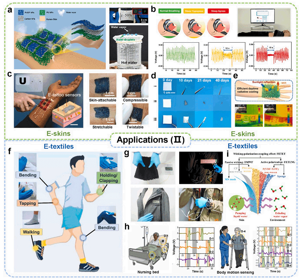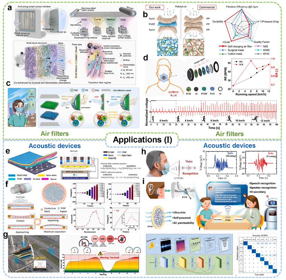 2、系统总结了以空气过滤器、声学器件、电子皮肤和电子纺织品为代表的定制应用。