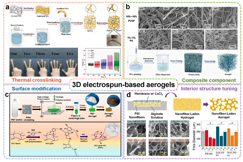 图 8. 基于静电纺丝的3D气凝胶设计EF - TENGs。