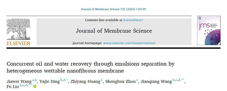 基于此,中国科学院宁波材料所刘富研究员和王建强副研究员团队介绍了一种具有焊接结构的异质浸润性纳米纤维膜,可实现持久的油水分离和高效的油与水同时回收,为乳化液的油水回收提供了新见解,推动了该方法在含油废水零排放处理中的潜在实际应用。相关研究成果以“Concurrent oil and water recovery through emulsions separation by heterogeneous wettable nanofibrous membrane”发表在期刊《Journal of Membrane Science》上。