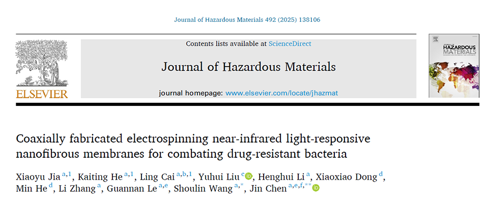 近期,南京医科大学陈进教授等人通过同轴静电纺丝技术,将槲皮素稳定的硒纳米颗粒(Qu@SeNPs)和二硫化钼纳米片与聚乙烯醇(PVA)成功混合,制备出具有核壳结构的先进纳米纤维膜,用于对抗耐药细菌。相关研究成果以“Coaxially fabricated electrospinning near-infrared light-responsive nanofibrous membranes for combating drug-resistant bacteria”为题目,发表在期刊《Journal of Hazardous Materials ( IF 11.3 )》上。