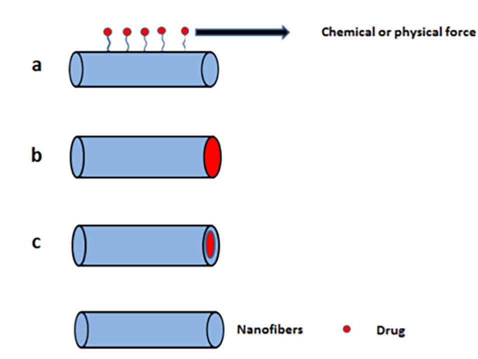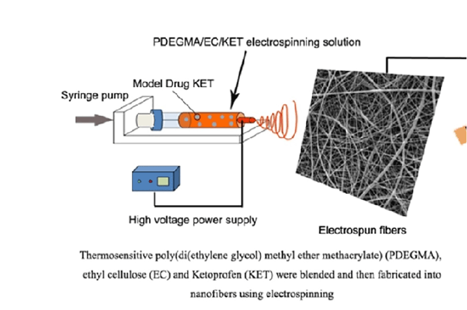 纳米纤维在用于药物控释体系中,通常作为载体,包覆药物进入人体内。载体在规定时间内,以尽可能恒定的速度将药物持续释放;能够确保药物只在目标组织内释放。