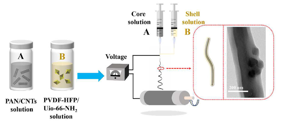 4. Materials Today Chemistry:柔性核壳 PAN/CNTs@PVDF-HFP/Uio-66-NH2 杂化纳米纤维膜,用于锂离子电池隔膜