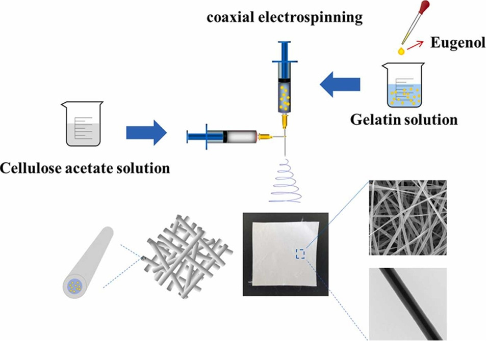 研究者采用同轴静电纺丝技术制备了以醋酸纤维素(CA)和明胶(Gel)为基础的新型活性材料,用于释放丁香酚(Eg)。这些电纺丝纳米纤维被涂上一层具有优异水稳定性的CA壳。Eg被封装在凝胶的核心部分。CA/Gel-Eg 核壳结构纳米纤维薄膜表现出良好的 Eg 剂量依赖性抗菌活性。该研究为开发具有核壳结构的电纺丝纤维用于活性食品包装提供了新策略。