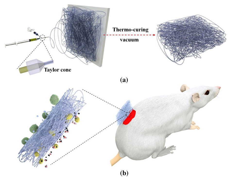 2. Advanced Fiber Materials:静电纺丝核壳纤维二维支架,用于伤口愈合