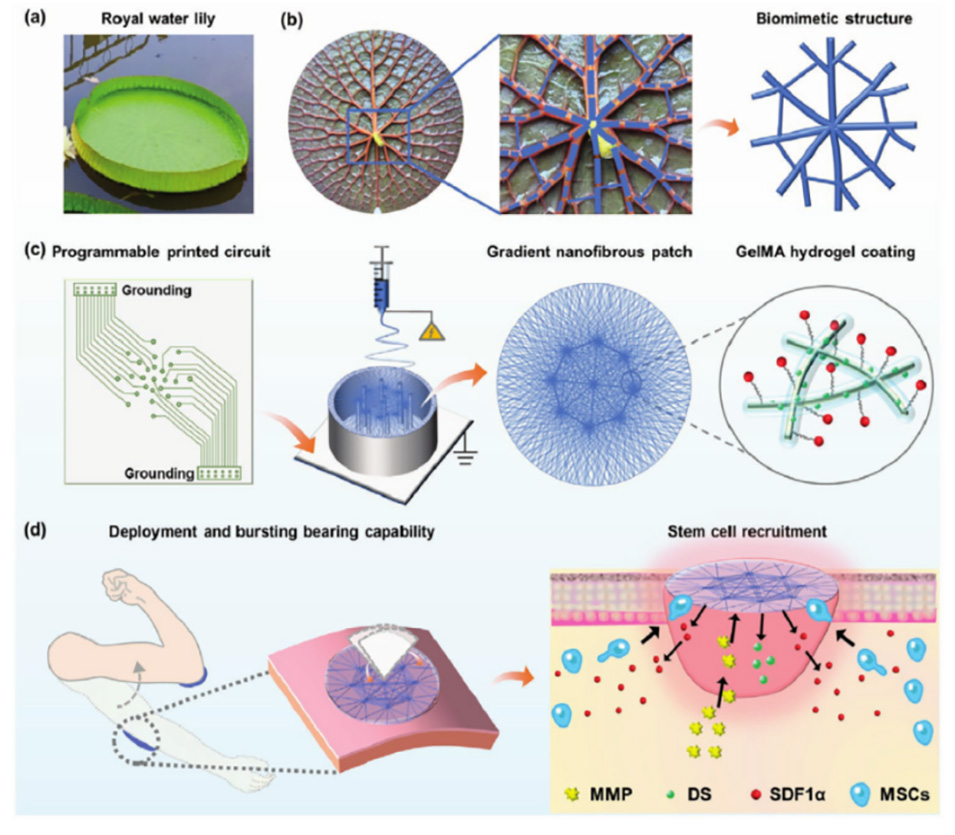 2. Advanced Functional Materials:灵感源于“王莲“分支结构,成功开发径向纳米纤维补片用于伤口管理