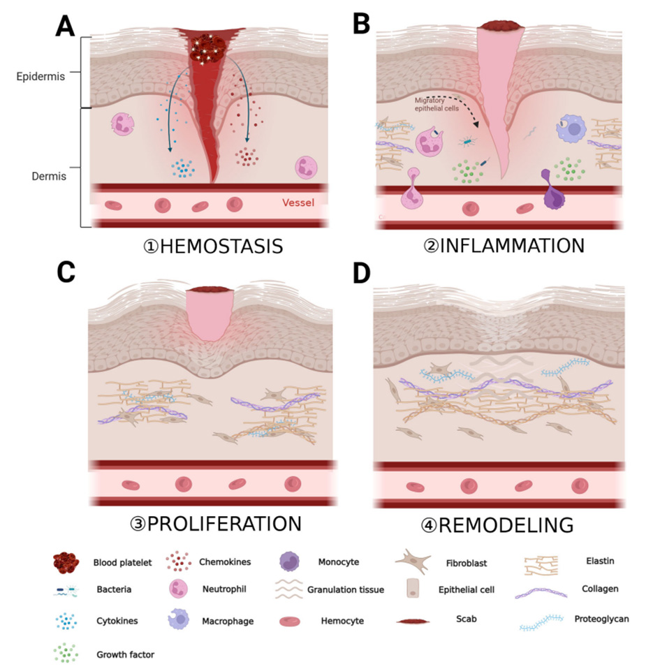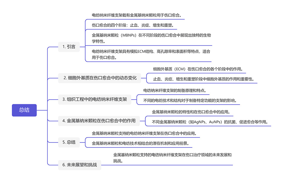 多样化和高效的创伤治疗潜力:可以使用不同的金属基纳米颗粒制备复合和多层纳米纤维,以实现多样化和高效的创伤治疗,满足不同愈合阶段的需求。