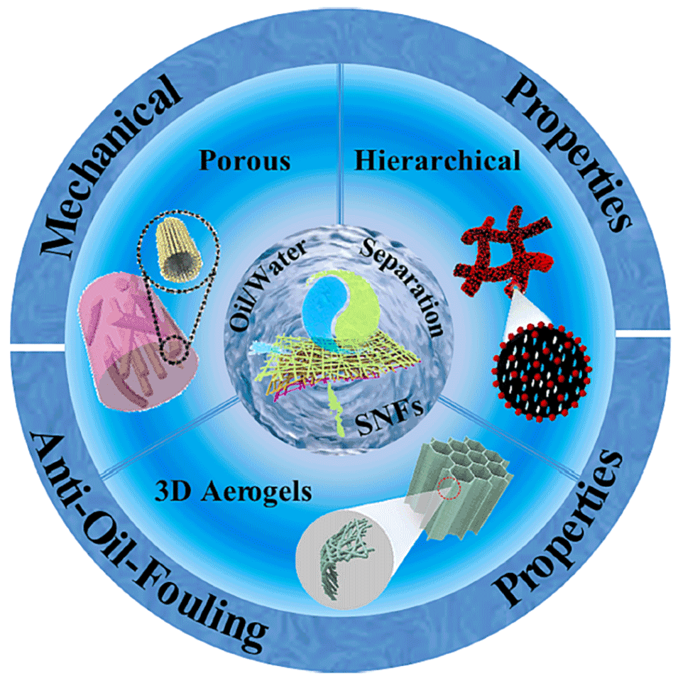 由于其高孔隙率、大比表面积以及优异的化学和热稳定性等独特性能,SNFs在油水分离中表现出极大的潜力,SNFs在油水分离中的应用如下: